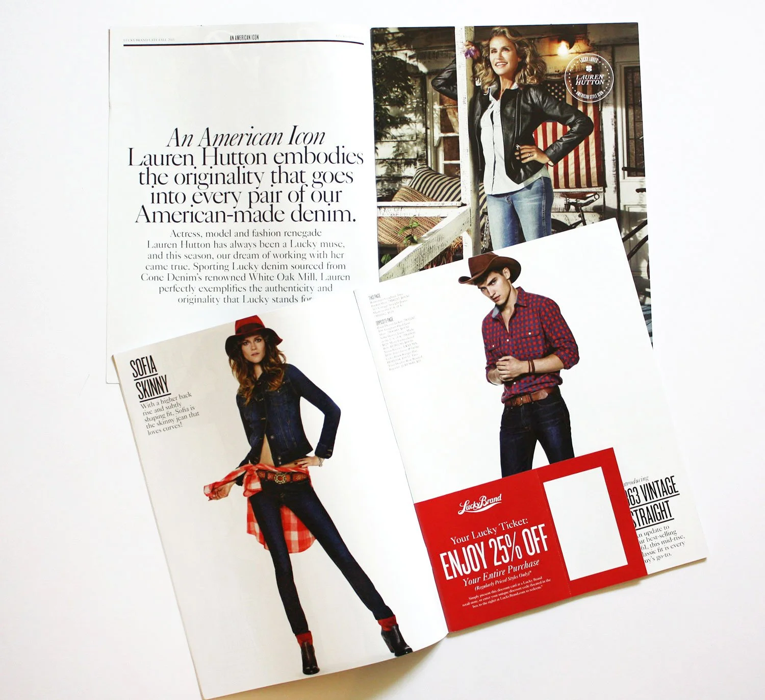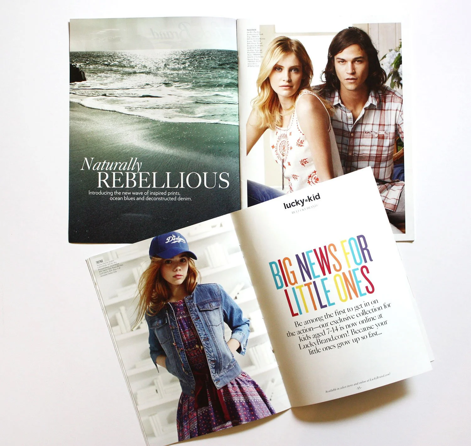 A large part of my 4 years at Lucky Brand was focused on designing direct-to-consumer seasonal catalogs which are a pivotal marketing asset for both adult and kid collections. I conducted the million-dollar press checks for each of these catalogs on-site at the powerhouse print shop, Arandell Press.