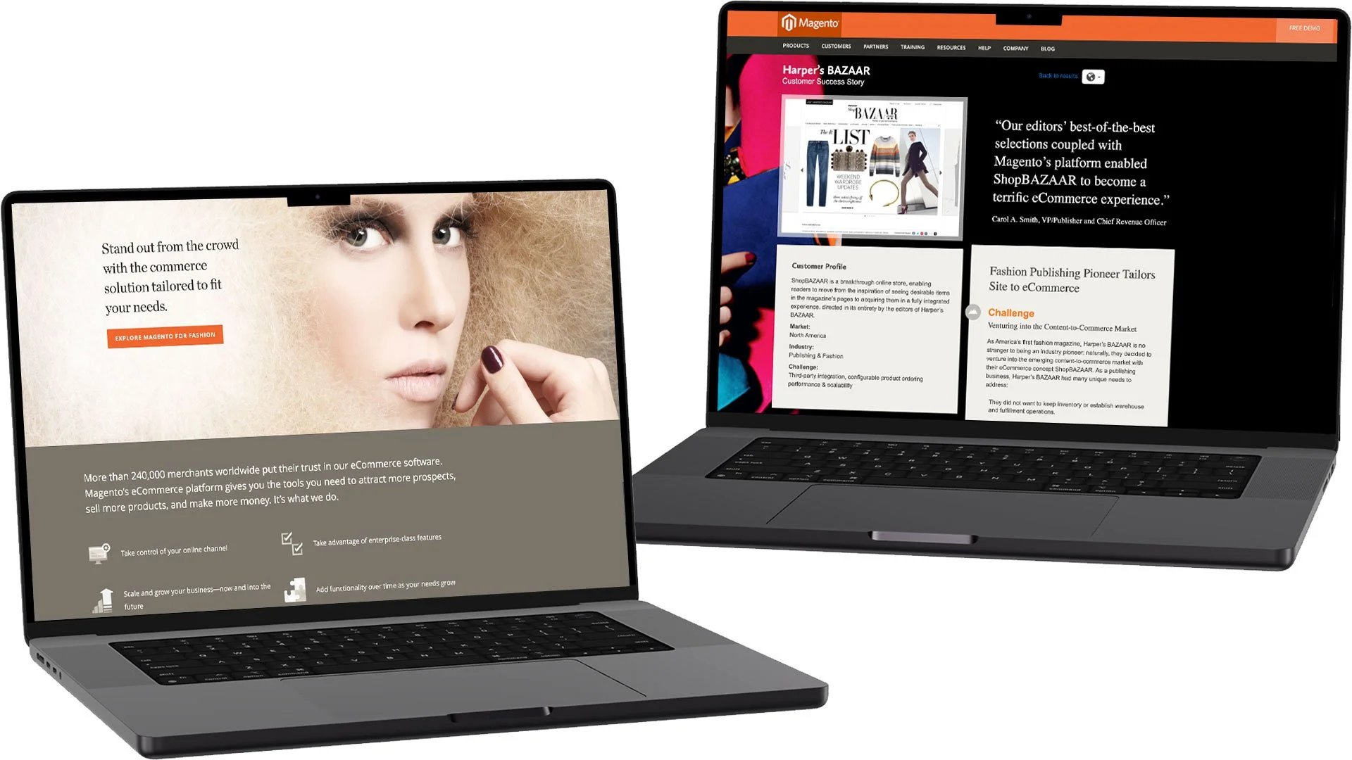 Magento is an e-commerce platform built on open source technology which provides online merchants with a flexible shopping cart system and functionality of their online store. I led visual design for Magento’s digital, print and experiential initiatives for B2B enterprise SaaS and direct-to-consumer SMB solutions leading up to its successful acquisition by Adobe.