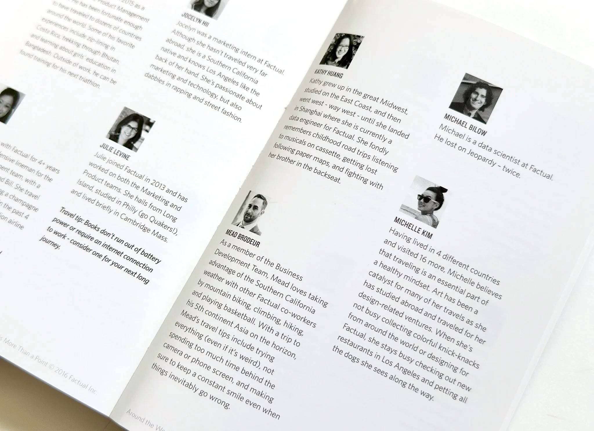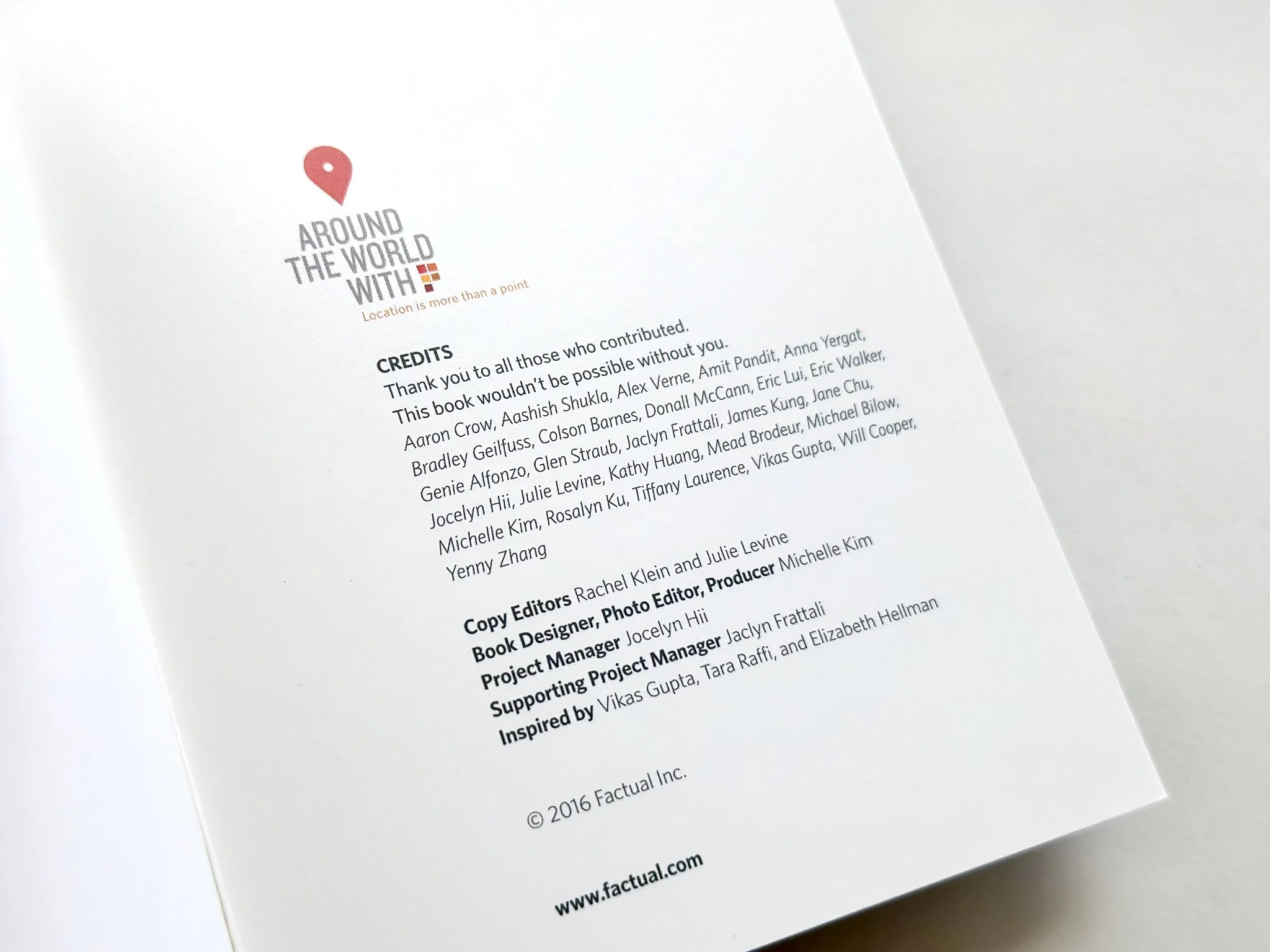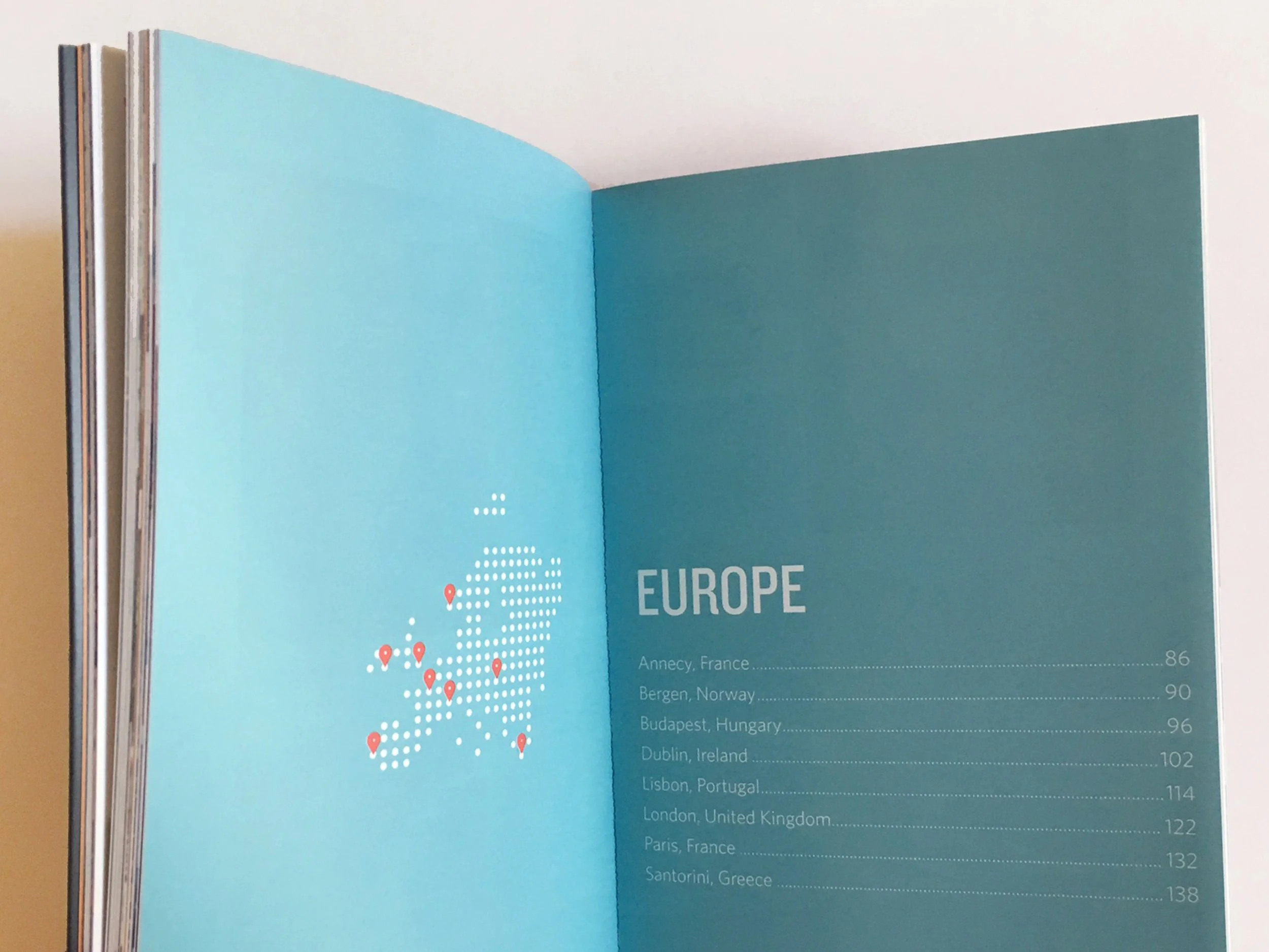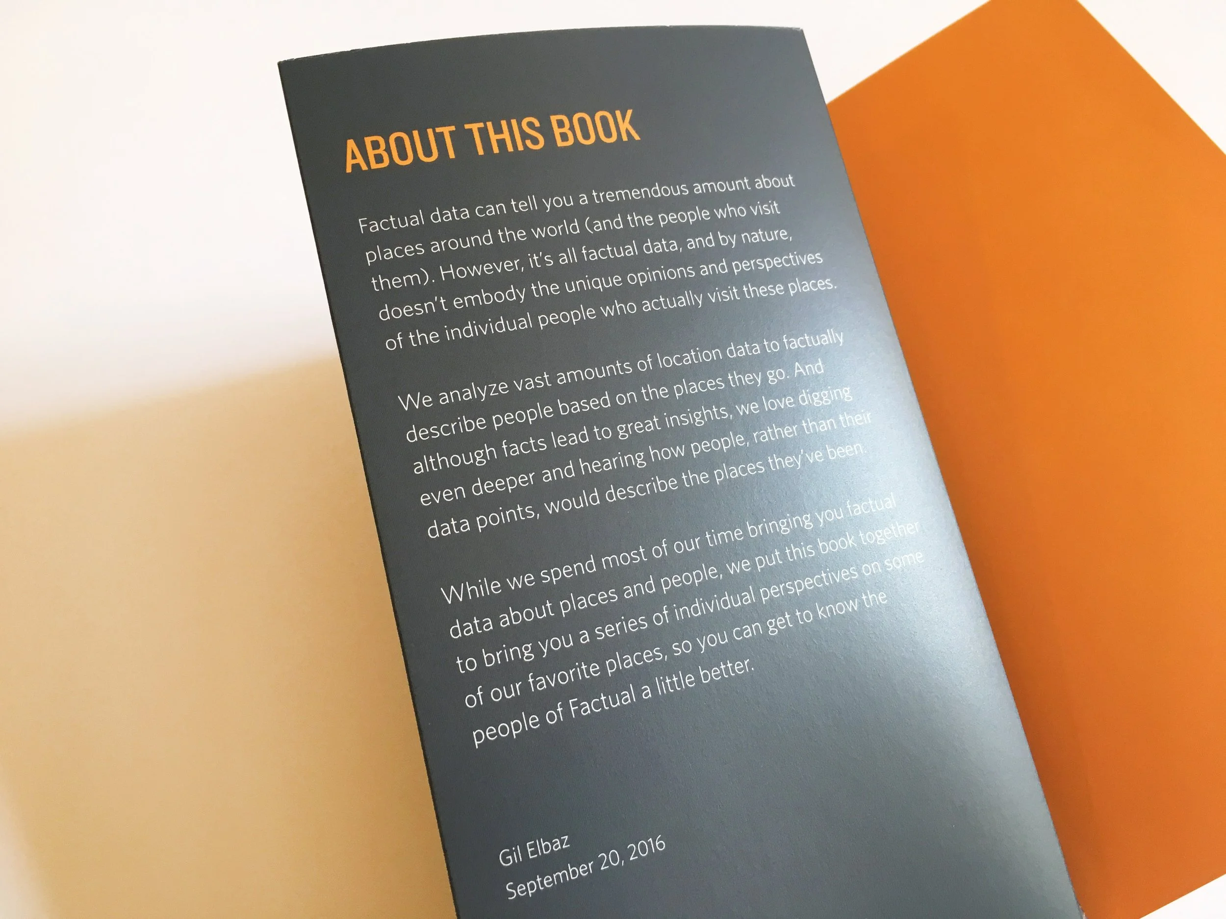 In order to showcase the deep catalogue of Factual’s geolocation data, I designed a client gift book. This 228-page book is a collection of travel stories and highlights actual Factual geolocation points. I designed and produced the book from start to finish.
