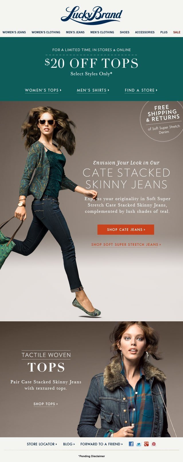 Design concept was carried through to Lucky Brand’s e-commerce site and digital marketing pieces.