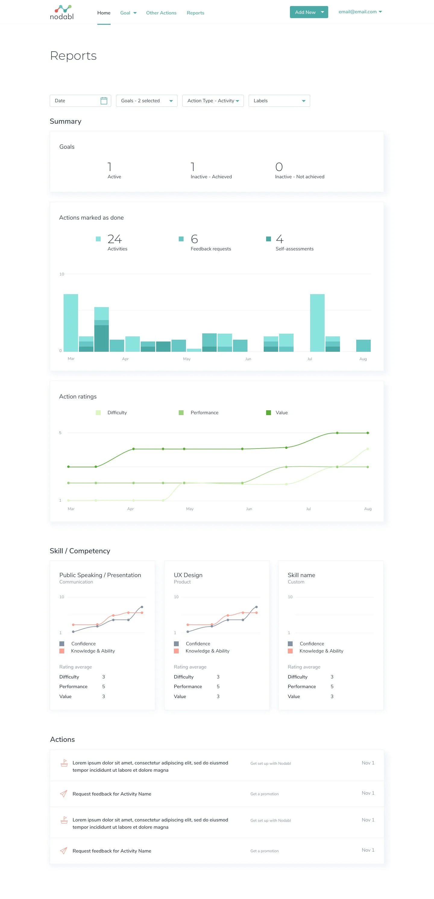 Nodabl’s light and airy visual style was developed with the user and action-based approach in mind. It was intentionally designed as an alternative to the more traditional career planning tools.